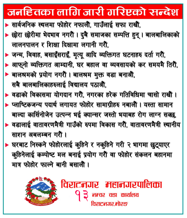 मेयर कोइरालासहित विद्यालय व्यवस्थापन समितिका अध्यक्ष रामचन्द्र यादव र प्रधानाध्यापक राजेन्द्रकुमार थापाले सम्मानपत्र प्रदान गर्नुभएको थियो । कार्यक्रमलाई सम्बोधन गर्दै मेयर कोइरालाले सामुदायिक विद्यालयहरुको गुणस्तर वृद्धिमा महानगरपालिका लागिपरेको बताउनुभयो । उहाँले विद्यालयको भौतिक संरचनामा समेत कुनै कमी हुन नदिने गरी महानगरपालिकाले काम गरिरहेको जानकारी दिनुभयो । मेयर कोइरालाले सामुदायिक विद्यालयका सबै कक्षाकोठामा पंखा जडान गरिने बताउनुभयो । गरिब तथा सीमान्तकृत वर्गका बालबालिका पढ्ने सो विद्यालयमा हाल १५० जना विद्यार्थी अध्ययनरत रहेको प्रअ थापाले जानकारी दिनुभयो ।